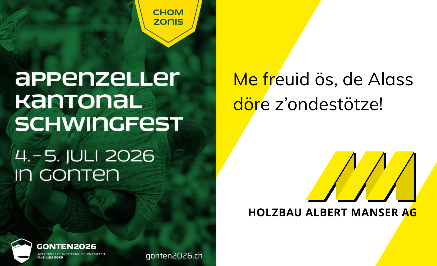 Holzbau Albert Manser AG ist Hauptsponsor des Kantonalen Schwingfestes Gonten2026
